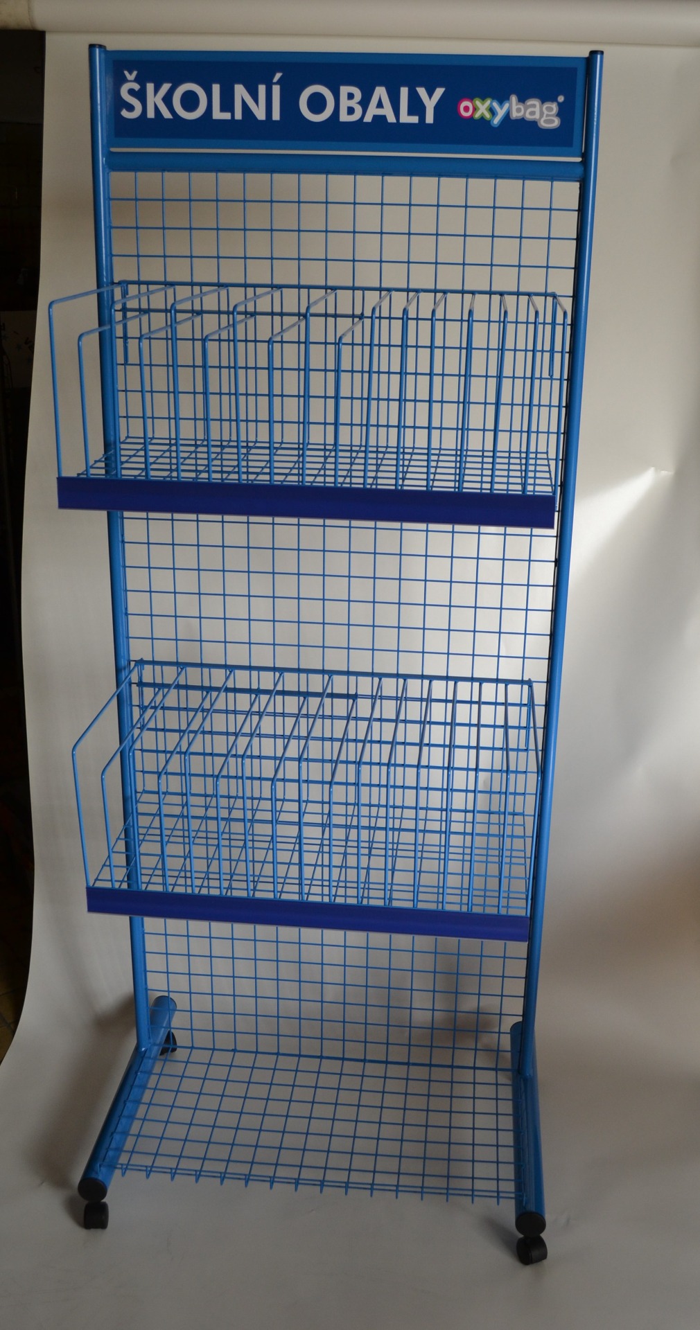 V podstatě se jedná o Stojan 60 se speciálními policemi na zavěšení a snadnému odebírání obalů na sešity a knížky různé velikosti