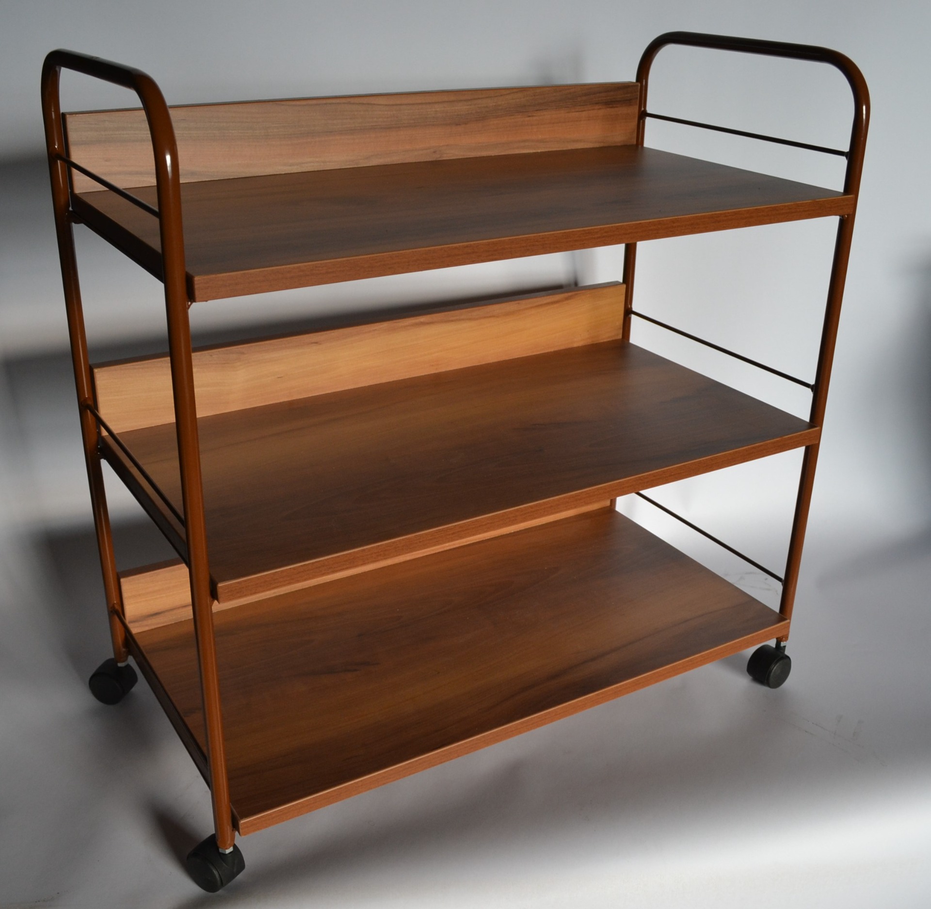 Jednoduchý vozík z lamino policemi. Počet polic jejich velikost i barva na přání.
