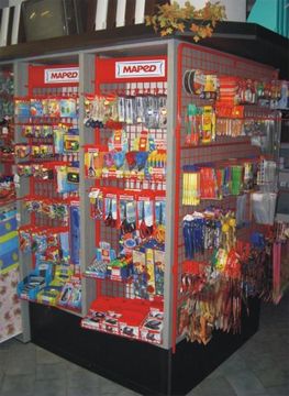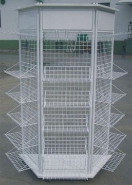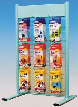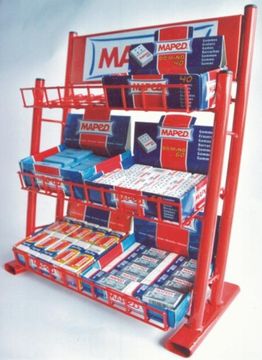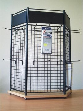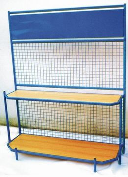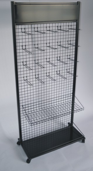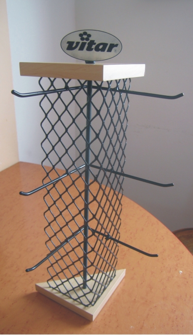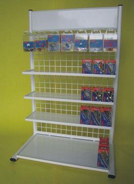 Stojan na pult, 700 x 470 x 3004 poličky, jedna řada háčků - možno i jinak, plné police - vhodné i na drobné zboží